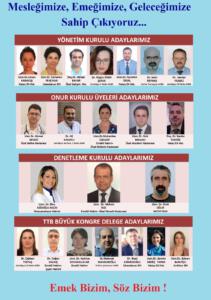 Sözlerimin sonunda odamız ister pratisyen, ister uzman, ister aile hekimi, ister kamuda, ister özel sağlık kurumlarında, ister özel muayene hekimi, ister işyeri hekimi olsun, bilimsel tıbba ve hekimlik etik değerlerine, meslek ahlakına bağlı tüm hekimlerin odasıdır evidir yuvasıdır. İşte zorlu olan bu süreçte bizi yalnız bırakmayan siz sevgili meslektaşlarımıza, odamız aktivistlerine, bize omuz veren kardeş demokratik meslek ve kitle örgütlerine, sendikalara, derneklere, çalışmalarımızı ve etkinliklerimizi kamuya taşıyan yazılı ve görsel medya çalışanı basın emekçilerine, bu süreçte büyük bir özveriyle çalışan odamızın sekreteryasına, tabi ki büyük bir sabırla bizlere destek olan eşlerimize, çocuklarımıza ve mücadelemizin haklılığına inanan ve yanımızda duran halkımıza teşekkür ederken, yönetime seçilecek arkadaşlara da her zaman yanlarında olacağımızı belirtir bu zorlu ve çetin geçecek mücadelede yönetim kurulumuz adına başarılar dileriz.