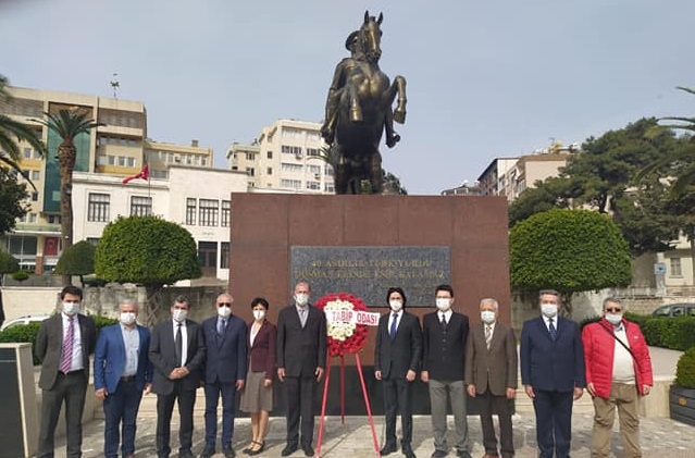 Hatay Tabipler Odası Başkanlığı tarafından 14 Mart Tıp Bayramı dolayısıyla Atatürk anıtına çelenk sunuldu.