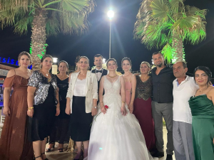 Başkan Hüzmeli, ilçe yönetimi ile birlikte Hakan Şefikoğulları ve Seyran Abacı çiftinin düğün törenine katılarak genç çiftin mutluluğuna da ortak oldu. Samandağ Palmira Otel’de düzenlenen düğün törenine katılan Hüzmeli, genç çifte mutluluklar diledi. Hüzmeli katıldığı program ile ilgili yaptığı açıklamada; “Samandağ eşrafından Şefikoğulları’nın mutlu gününe Defne İlçe Teşkilatı adına katılım sağladık. Genç çiftimizi kutluyor, bir ömür boyu aile saadeti diliyorum” dedi.
