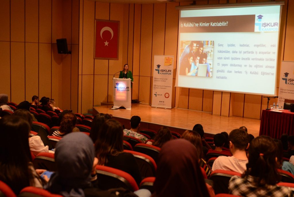 Yoğun katılımın gözlendiği toplantıyla ilgili İŞKUR İl Müdürlüğü’nden yapılan açıklamada; “17 Ekim’de 1.Sınıf Öğrencilerine yönelik toplumsal aktörlerin rolü konusuna önem vererek özgeçmiş hazırlama, mülakat teknikleri, beden dili gibi eğitimler yoluyla öğrencilerimizin iş arama ve görüşme becerilerini arttırarak bireysel olarak hiçbir kuruma ihtiyaç duymadan kendi istihdam edilebilirliklerini arttırmaları adına İŞKUR KAMPÜS tanıtım toplantısı gerçekleştirilmiştir. Tanıtım Sunumunda bilginin anlık olarak değiştiği bu dijital çağda gerekli yetkinliklere değinilirken öğrencilerimize bu yarışın gerisinde kalmamaları için “güncel olmak, araştırma ve uyum becerisine sahip olarak geleceklerini- kariyerlerini inşa ederken #iskur daima yanınızda# sloganı İle başlayıp #iskur kampüs ile geleceğimizi birlikte inşa ediyoruz# sloganı ile bu 4 yıllık süreçte ve sonrasında da onlara destek olmaya devam edeceğimizi belirttik” denildi.