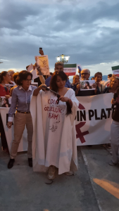 Konuşmaların ardından sanatçı Burçin Orhon, ‘Masha’ya ağıt’ ismini verdiği bir dans gösterisi yaptı. Kuşadası’nda yaşayan İranlı bir kadın da önce saçlarını makasla kesti, ardından Erkekler saçlarını kazıtıyorsa, kadınlar da kazıtır. Kadın erkek eşittir? diyerek saçlarını makine ile traş etti.