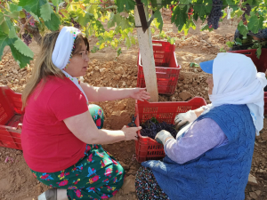 CHP Genel Başkan Yardımcısı Denizli Milletvekili Gülizar Biçer Karaca, üzüm üretimiyle öne çıkan Çal İlçesi’nde yevmiyeyle üzüm toplayan kadınlarla birlikte üzüm kesti, sabahın erken saatlerinde tarlada çalışmaya başlayan kadınların taleplerini yerinde dinledi. Çal İlçe Başkanı Ömer Dağlı ile birlikte Çal Belevi Mahallesinde yer alan üzüm bağlarını ziyaret eden Gülizar Biçer Karaca’ya zamlardan, enflasyondan ve fakirlikten yakınan üretici kadınlar, “fakirlik yüzünden, yağ almak un almak için bu yaşta yevmiyeyle tarlaya çalışmaya geliyoruz” dedi.