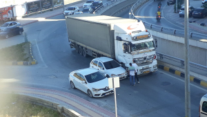 31 AJF 236 plakalı araç, farklı şeritten ana yola çıkmaya çalışan 31 V 9630 plakalı kamyona çarptı. İki araçta da hafif maddi hasara neden olan kazada yaralanan olmazken kaza nedeniyle trafik bir süre durdu. Kısa süreli tartışmanın ardından araçlar yoldan çekilerek yolu açtı. Meydana gelen kaza ile ilgili olay yerine gelen emniyet ekipleri tarafından tahkikat başlatıldı.