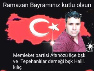 Muharrem İnce’nin Genel Başkanlığını yaptığı Memleket Partisi Altınözü İlçe Başkanı ve Tepehanlılar Sosyal Yardımlaşma ve Dayanışma Derneği Başkanı Halil Kılıç, Ramazan Bayramı dolayısıyla bir kutlama mesajı yayınladı.