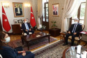 KKTC Cumhurbaşkanı Tatar, Hatay programı kapsamında ilk olarak valiliği ziyaret etti. Tören mangası ile karşılanan Tatar, valilik şeref defterini imzaladıktan sonra Vali Rahmi Doğan ile bir araya geldi. Ziyarette konuşan KKTC Cumhurbaşkanı Tatar, “Türkiye ile Kuzey Kıbrıs Türk Cumhuriyeti fevkalade güzel ilişkiler içerisinde. Cumhurbaşkanlığı seçiminden sonra Ankara, İstanbul gibi şehirlere ziyaretler gerçekleştirdim. Doğu Akdeniz’de halkımızın refahı için birlikte hareket etmeliyiz. Türkiye’de KKTC’ye karşı güzel bir algı var. Aramızdaki ilişkinin her geçen gün daha iyiye gittiğini görüyorum. Bazı zor zamanlardan geçtik ancak geleceğe güvenle bakabilmek ve güçlü olabilmek için ortak hareket etmek fevkalade önemli. Hatay’dan çok sayıda vatandaş Kıbrıs’ta yaşamaktadır. Bırakın çocuğu artık torunlar orada yaşamaktadır. Bu da bizim zenginliğimizdir. 47 yıl sonra Kuzey Kıbrıs’ta yeni bir siyaset anlayışı ile Türkiye’nin de büyük destekleriyle Maraş’ın açılmasıyla yan yana yaşayan iki ayrı egemen devletin iş birliği olabileceğini tüm dünyaya anlatmaya çalışıyoruz. Kıbrıs’ta yaşayan iki ayrı millet vardır. Tüm dünya bunu böyle bilmelidir. Kıbrıs’ta yaşayan Türkler, Osmanlı döneminde yönetici olarak orada bulundular. İngiliz yönetiminde birtakım sıkıntılar yaşadık ama hiçbir dönemde Rumların boyunduruğu altına girmedik. Bu çok önemli” dedi.