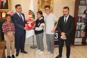 Başkanlık koltuğunu Başkan Deli’den devralan Berçin Mina, Havva ve Eymen yaptıkları konuşmalarda tüm çocukların 23 Nisan Ulusal Egemenlik ve Çocuk Bayramlarını kutladı. Başkan Deli, öğrencilere ve beraberindeki öğretmenlere hediye takdiminde bulundu.