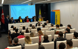 Tobbund Lojistik Yatırım A.Ş. Bölgesel Bilgilendirme Toplantıları’nın ikincisi ATSO’da gerçekleştirildi. Tobbund Lojistik Yatırım A.Ş. Genel Md.Mehmet Uylukçu ve TOBB UND yetkililerinin sunumlarıyla yapılan toplantıya UND Hatay Bşk.Yrd.Kemal Gül, Meclis Üyesi Ali Kuş, Komite Başkanı Ömer Faruk Kızgın ve üyeler katıldı. Yoğun katıılımın gerçekleştiği interaktif toplantı sonunda ATSO’ya evsahipliğinden dolayı teşekkür edildi.