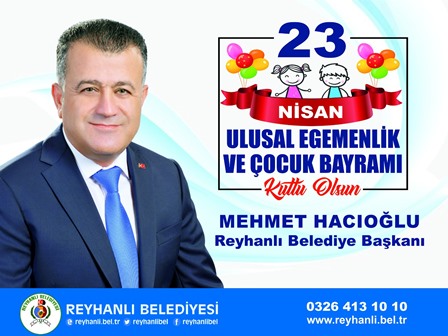 Reyhanlı Belediye Başkanı Mehmet Hacıoğlu mesajında: “23 Nisan Ulusal Egemenlik ve Çocuk Bayramı, Çeşitli ülkelerden çocukları buluşturan, kaynaştıran ve aynı zamanda dostluk köprülerinin kurulduğu bir gündür. Tüm dünyaya kardeşlik mesajlarının verildiği ve her türlü sorunun el ele, çözülmesi gerektiğinin hatırlatılması bakımından “23 Nisan Ulusal Egemenlik ve Çocuk Bayramı” çok büyük önem taşımaktadır.