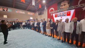 MHP Genel Başkan Yardımcısı Prof. Dr. Edip Semih Yalçın’ın anosu ile tek tek sahneye çağırılan yeni yönetim kurulu üyeleri İl Başkanı Mehmet Fevzi Altay ile birlikte salondakileri selamladılar.