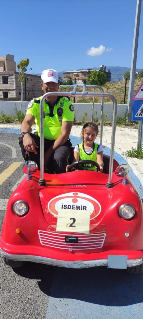 Trafik parkına, sınıf öğretmeni Hatun Sürmeli nezaretinde misafir olan Beyhan Gençay Ortaokulu anasınıfı öğrencileri bu kapsamda, trafik kurallarını kendileri için oluşturulan özel parkurlarda ve akülü araçlarla tecrübe ederek öğrenme fırsatı buldu.