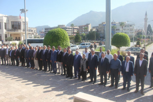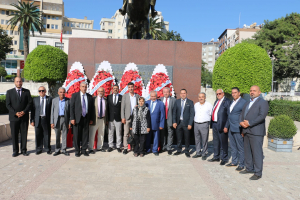 Cumhuriyet alanında gerçekleşen çelenk koyma törenine Mahalli İdareler Müdürü Lütfi Şaklar, HBB Muhtarlar Daire Başkanı Durmuş Yıldırım, Hatay Muhtarlar Derneği ve Akdeniz Muhtarlar Federasyonu Başkanı Mahmut Gülcü, Antakya İlçe Muhtarları Derneği Başkanı Süleyman Çeltik, Defne İlçe Muhtarlar Derneği Muhsin Demirel ile Muhtarlar katıldı.