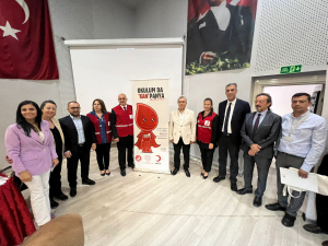 Ardından söz alan Kızılay Hatay Şube Başkanı Ş.Kudret Özbakış; “Kızılay olarak İlimizde birçok Kurum – Kuruluş ve STK ile iş birliğimiz kapsamında Kan Bağış kampanyaları düzenlenmiş ve çok sayıda Kan Bağışı ve Kök Hücre Bağışı alınarak, tedavi bekleyen hastalara ulaştırılmıştır. Hedeflerimiz doğrultusunda bu çalışmalarımız her yıl arttırılarak devam etmektedir. Kızılay olarak en büyük hedeflerimizden bir tanesi de Geleceğimizin Mimarı gençlerimizin ilkokul çağından başlayarak Kızılay bilinci ile aşılanarak duyarlı bireyler olarak birer Kan Bağışçısı olmalarıdır. Bu Kapsamda; Milli Eğitim Bakanlığı ile yürütülen kan bağışı faaliyetlerinin sürdürülebilirliğinin sağlanması amacıyla kan bağışı merkezlerince yerelde uygulanan projeler ve yıl bazlı istatistiktiler incelenerek iyi uygulama örnekleri tespit edilmiş ve ülke genelinde yaygınlaştırma çalışmaları başlatılmıştır. Ülkemizin kan ihtiyacının %92’sini Kızılay tarafından karşılanmaktadır Okulumda KANpanya Var adlı proje ile hem ilimizde hem de ülkemiz genelinde başarıyla uygulanarak kan bağışı oranın daha da artarak kan bekleyen birçok hastalarımıza destek olunacaktır. Bu projenin hayata geçmesinde emeği geçen başta İl Müdürümüz Sn Seyit Ali Büyük olmak üzere Kızılay Kan Merkezi ekibine çok teşekkür ederim.” dedi.