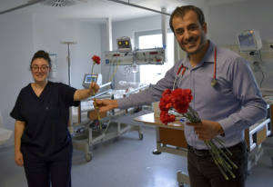 Hatay Özel Samandağ Deniz Hastanesi Yönetimi ve personeli hem “Dünya Hemşireler Günü” hem de Deniz hastanesi ailesine yeni katılan Nöroloji Uzm. Dr. Faruk Mavruk vesilesiyle pasta keserek çifte kutlama yaptılar.