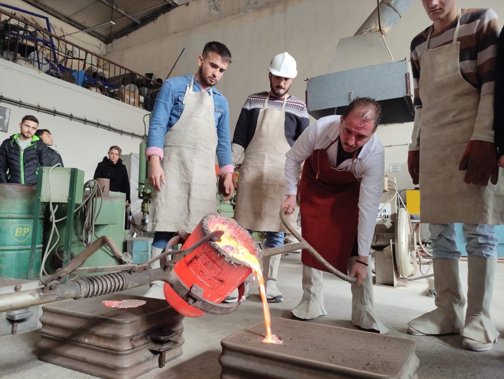 İskenderun Teknik Üniversitesi (İSTE) Rektörü Prof. Dr. Tolga Depci İskenderun Meslek Yüksekokulu’nda öğrencilerle Döküm Atölyesinde bir araya geldi.