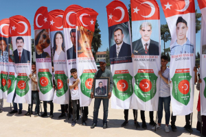 Vatandaşlar, ellerinde hayatını kaybedenlerin fotoğrafları ve pankartlarla ‘şehitler ölmez’ sloganı attı.