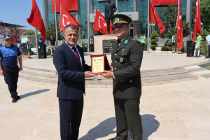 Kahraman Türk Askerinin Reyhanlı’ya girişinin 84. Yıldönümü dolayısıyla Atatürk Anıtı’na çelenk sunma töreni düzenlendi.