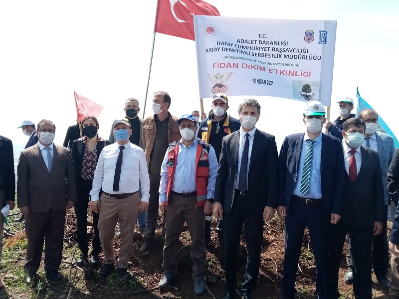 İl Sğalık Müdürlüğü tarafından yapılan açıklamada, “Hatay İl Sağlık Müdürü Dr. Mustafa HAMBOLAT,Cumhuriyet Başsavcısı Ahmet ATAMAN, Halk Sağlığı Hizmetleri Başkanı Dr. Mehmet ÖZDOĞAN, Acil Sağlık Hizmetleri Başkanı Dr. Süleyman BALAKAN, Antakya İlçe Sağlık Müdürü Dr.A. Betül SOVUKLUK, İl Sağlık Müdürlüğü personelleri ve gönüllü katılımcılar ile birlikte pandemi mücadelesinde hayatlarını kaybeden merhum sağlık şehitleri adına Serinyol ilçesi Alahan mevkisinde ”Sağlık Şehitleri Hatıra Ormanı” fidan dikimi gerçekleştirildi.