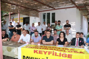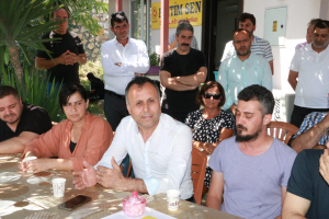 Eğitim Sen Şube Başkanı Cüneyt Kayıkçı, toplantıdaki açıklamasında; ”Ülkenin gündeminin yine halka, emekçilere yönelik saldırılarla dopdolu olduğunu söyledi ve şunları dile getirdi: “Bir ülke düşünün ki yönete(meyenler)nler, halkı açlığa, yoksulluğa, adaletsizliğe gark etmenin bin bir türlü yolunu bulmuş, hiç durmadan saldırıyor. Bir ülke düşünün ki gündemi sadece açlık, yoksulluk, halka saldırı, katliam yani dizginlenemeyen bir adaletsizlik. Bu adaletsizliklerin en can yakıcı noktalarından birisi hiçbir hukuki dayanağı olmayan, tamamen iktidarın zorbalığına, bu zorbalığın yarattığı keyfiliğe dayalı işten çıkarmalar yani ihraçlardır. Bu perspektifle son olarak ihraç edilen öğretmen arkadaşlarımız Pelin Akbaş YEŞİL ve Çağdaş CAN nezdinde tüm KHK mağdurları için mücadele ve dayanışmayı büyüterek sürdüreceğimizi tüm kamuoyuna buradan ilan ediyoruz.” ifadelerini kullandı.