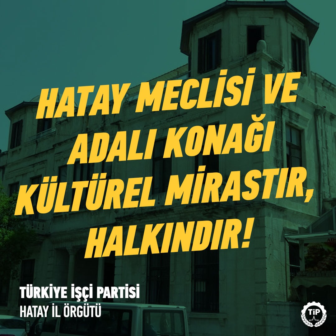 Türkiye İşçi Partisi Hatay İl Örgütü, Hatay Meclisi binası ve Adalı Konağı’nın halkın ortak mirası olduğunu belirtti ve ihalenin iptal edilmesini istedi.