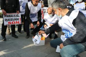 Bunun bir adımı olarak; “GEÇİNEMİYORUM, İNSANCA YAŞAMAYA YETECEK BİR ÜCRET İSTİYORUM” diyen TÜM KAMU EMEKÇİLERİNİ birlikte mücadele etmeye çağırıyoruz” ifadelerini kullandı.