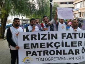 Tüm Öğretmenler Birliği Sendikası, Örgütlenme Sekreteri Hizam Hasırcı, vatandaşların, ekonomik kriz altında ezildiklerini belirterek, herkese yaşanabilir bir ücret verilmesini istedi.