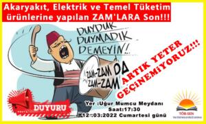 Akaryakıta arka arkaya yapılan rekor zamlar, elektriğe, doğalgaza yapılan fahiş zamlar altında nasıl yaşanabilir ki? Domino etkisi gibi akaryakıtta yapılan her zam ulaşımdan gıda ürünlerine, meyve ve sebzeden temel tüketim maddelerine kadar her alana yansıyor. Bunun sonucunda da tek bir gerçek ortaya çıkıyor: Geçinemiyoruz! Halkımız gıda fiyatlarından ötürü sağlıklı beslenemediği gibi fahiş elektrik ve doğalgaz zamları sonucunda da yeterince ısınamamaktadır. Gelinen noktada halkımız bu soğuklarda ısınamazken bu hayat pahalılığı karşısında beslenmekle, ısınmak arasında tercih yapmaya zorlanıyor. İktidara yakın şirketler, sermaye bu kriz ortamında zenginleşirken, emekçiler olarak bizler Yoksullaşıyoruz! Ülkede yönetememe krizinden dolayı yoksulluk, kıtlık almış başına gidiyor. Sebebi kötü yönetilmek olan ekonomik kriz, ne bir savaşa bağlanabilir ne de küresel bir krize. Bu savaş ve ekonomik krizler öngörülmeden, sermaye ayakta dursun diye Cumhuriyet tarihinde ilk defa zor zamanlar için ayrılmış olan ihtiyat akçesini harcayan yine iktidarın kendisidir.