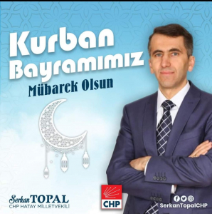 CHP Hatay Milletvekili Serkan TOPAL yayımladığı bayram mesajında;” Başta Hataylı hemşehrilerim olmak üzere milletimizin Kurban Bayramını kutluyor, sağlık ve esenlik içinde nice güzel bayramlar geçirmemizi diliyorum”dedi.