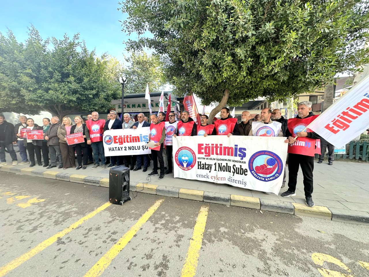 İskenderun’da Kuşlu Park’ta düzenlenen eylemde, Genel Merkez adına basın açıklamasını Eğitim-İş 2 No’lu Şube Başkanı Hasan Kuş okudu.