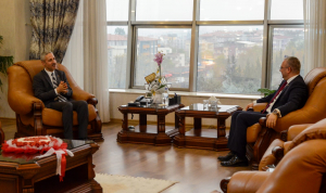 Hayırlı olsun ziyareti için Turgut’a memnuniyetlerini bildiren Rektör Eren, Devir Teslim Töreninde duyurduğu yönetim vizyonuna atıf yaparak, sürdürülebilir kalkınma için bölgesel ortaklık yaklaşımlarına öncelik vereceklerini kaydetti. İletişim tasarımlarının çağdaş dünyada kamu diplomasisi ve ülke/şehir markalama açısından ne denli merkezde olduğundan bahseden Prof. Dr. Veysel Eren, “Türkiye Yüzyılı vizyonunun en önemli sacayaklarından biri olan iletişimi, dijital ve geleneksel yönleriyle tek bir hedefe entegre eden İletişim Başkanlığımızla koordinasyon fikri, üniversitemizin vizyonunda seçkin bir yere sahiptir. Bizler Türkiye Yüzyılını bir atılım seferberliği olarak görüyor ve üzerimize düşen sorumluluğu diğer güzide kurumlarımızla paylaşmayı hedefliyoruz.” şeklinde konuştu.