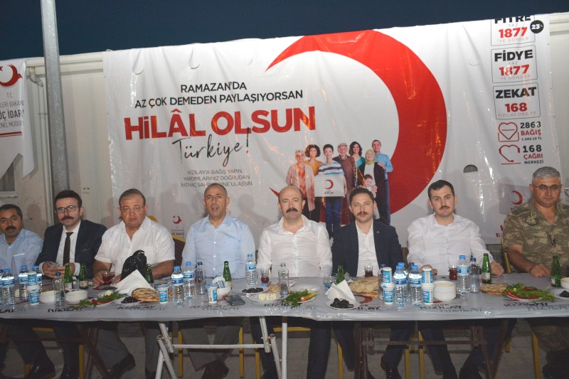“Ramazan’da bu hilalin altında buluşalım” sloganıyla düzenlenen programa; Hatay Vali Yardımcısı Mahmut HERSANLIOĞLU, Kaymakam Bülent UYGUR, Antakya Kaymakamı Orhan MARDİNLİ, Kumlu Kaymakamı Ercan KAYABAŞI, Hatay İl Göç İdaresi Müdürü Sn. Mustafa Cengiz BİLEN, Türk Kızılayı Suriye İnsani Yardım Operasyonu Alan Koordinatörü Fatih KÖKCAN, kurum amirleri ve Suriyeli misafirler katıldı.