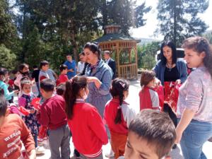 Uzunalıç Köyü İlkokulu ve Ortaokulu öğrencileri ile bir araya gelen Altıneller Vestel Kurumsal satış müdürü Reşit Arıcıoğulları ve Satış temsilcisi Yasemin Tatlı Bayram coşkusu yaşayan öğrencilere Boyama kitabı, kuru boya ,sulu boya ve Bayrak hediye ettiler.