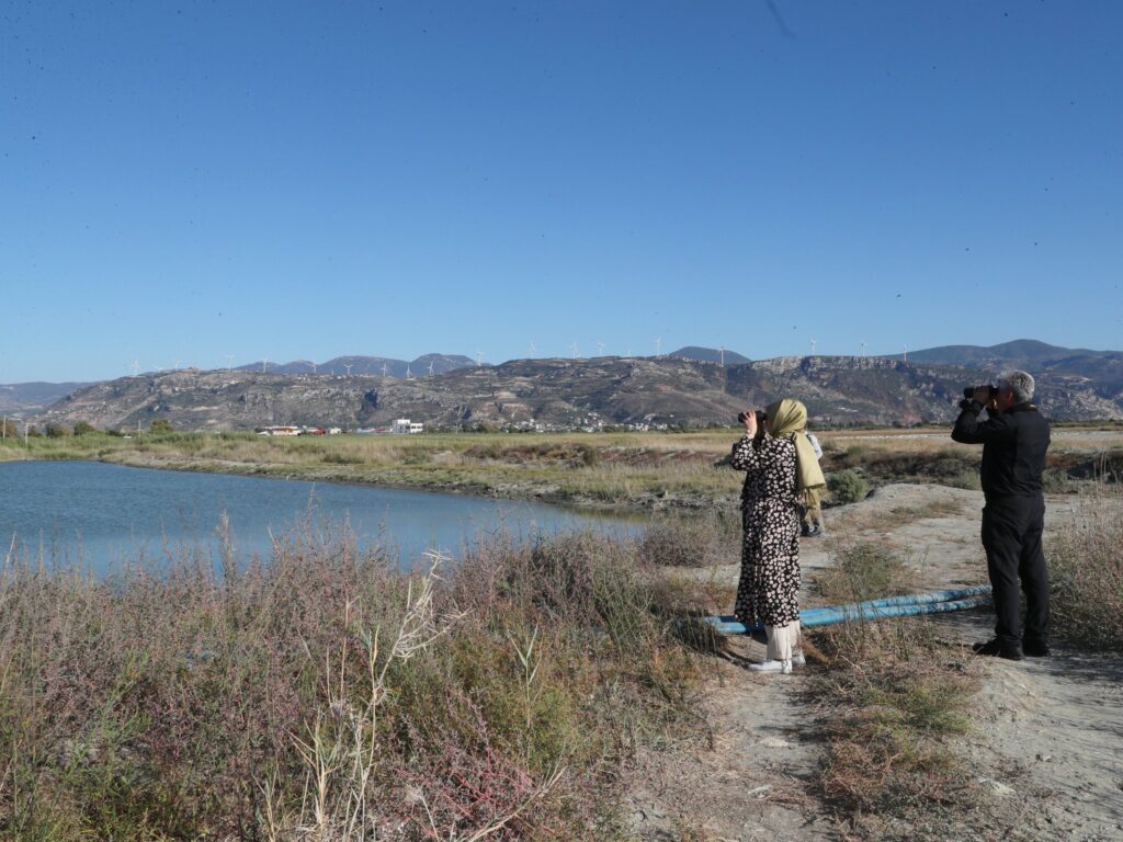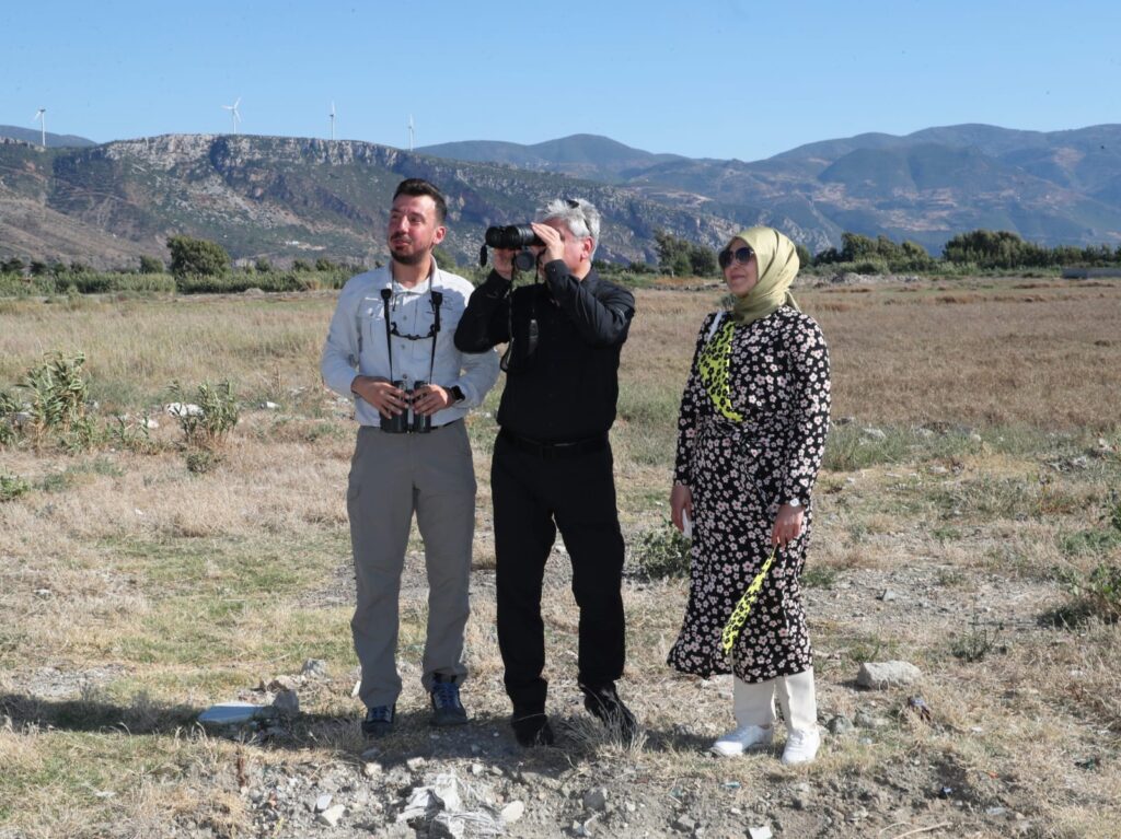 Hatay Valisi Rahmi Doğan, eşi Gülden Gülüzar Doğan ve Kuş Gözlemcisi ve Yaban Hayatı Uzmanı Emin Yoğurtçuoğlu ile birlikte koruma altına alınan Samandağ Milleyha Sulak Alanında incelemelerde bulundu.