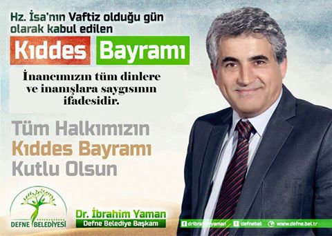 Defne Belediye Başkanı Dr. İbrahim Yaman, Hz. İsa’nın vaftiz edildiği gün olarak 19 Ocak’ta kutlanan Kıddes Bayramı ile ilgili kutlama mesajı yayınladı.