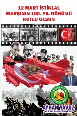 Kırıkhan Belediye Başkanı Ayhan YAVUZ, İstiklal Marşımızın kabulünün 100. yılı münasebetiyle kutlama mesajı yayınladı.