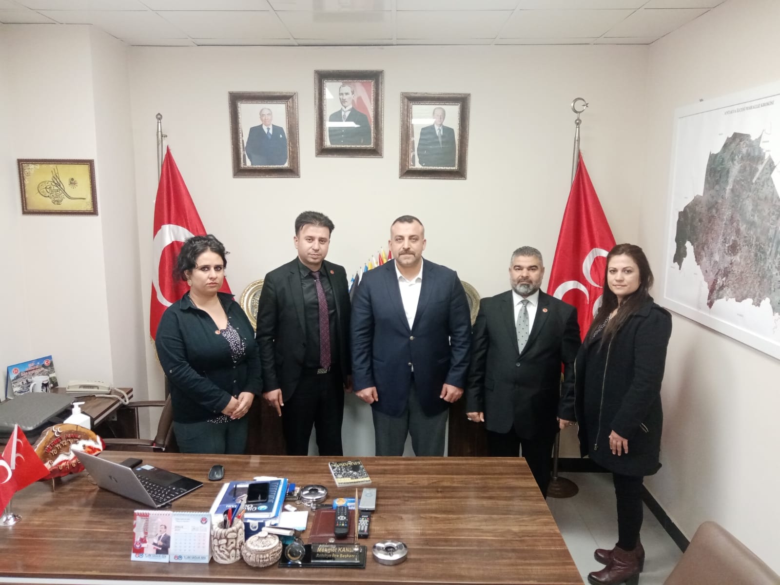 Yeniden Refah Partililer Milliyetçi Hareket Partisi Antakya İlçe Başkanı Mehmet Ali Kanlı’ya nezaket ziyaretinde bulundu. Ziyarette Yeniden Refah Partisi Antakya İlçe Başkanı Cumali Helvacı, Antakya ilçe Mahalli İdareler Sorumlusu Başkanı Hüseyin Berat Arslan, İl Kadın Kolları STK Halkla ilişkiler Başkanı Hediye Altınöz ve Antakya İlçe Kadın Kolları Başkanı Dilek Uğurlu hazır bulundu.