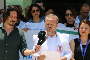 Heyetler adına açıklama yapan Hatay Tabip Oası Başkanı Sevdar Yılmaz; “Emeğimizin Hakkını Aldığımız Sağlıklı Bir Gelecek İçin G(ö)REV Başındayız. Biz, “Başka Kamil Furtun’lar Ersin Arslan’lar olmasın, yaşatmak için yaşamak istiyoruz” diyenler, Biz, gecesi gündüzü olmayanlar, Biz, hastalandıran bu sağlık sistemine göz yummayan, toplum sağlıksızken nefes alamayanlar, Biz, bu gördüğünüz binalarda sistemin tüm başarısızlığının altında bırakılanlar; Biz, aylardır oyalama taktikleri ile yok sayılan, emeği hiçleştirilen, mesleği değersizleştirilenler, Biz, KHK ve güvenlik soruşturmalarıyla, aile hekimliği ceza yönetmeliğiyle baskı altına alınmaya çalışanlar, Tüm bu olumsuzluklara rağmen; Biz “giderlerse gitsinler”e boyun eğmeyenler; mesleğinin beyazını karanlığa ışık yapanlar; emek bizim, söz bizim diyoruz.