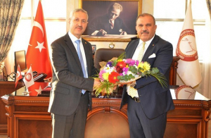 Reyhanlı Ticaret ve Sanayi Odası Başkanı Necmettin Zaroğlu ve beraberindeki heyet Mustafa Kemal Üniversitesi rektörlüğüne atanan Prof. Dr. Veysel Eren’e tebrik ziyareti gerçekleştirdi.